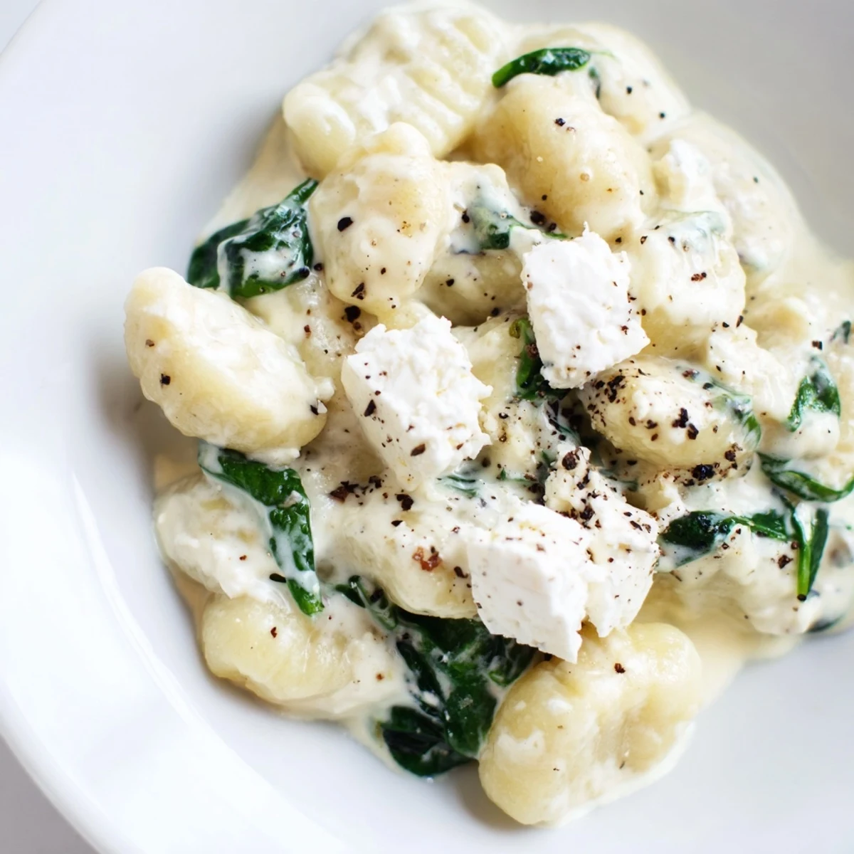 It was a rainy Tuesday when my roommate first made this for us while we were huddled under blankets watching terrible movies. The way that feta hit the hot cream sauce sent this incredible tangy aroma through our tiny apartment. I've been making it ever since, tweaking it until the sauce perfectly clings to each pillow of gnocchi. Something about that combination of salty cheese and wilted spinach just works every single time.