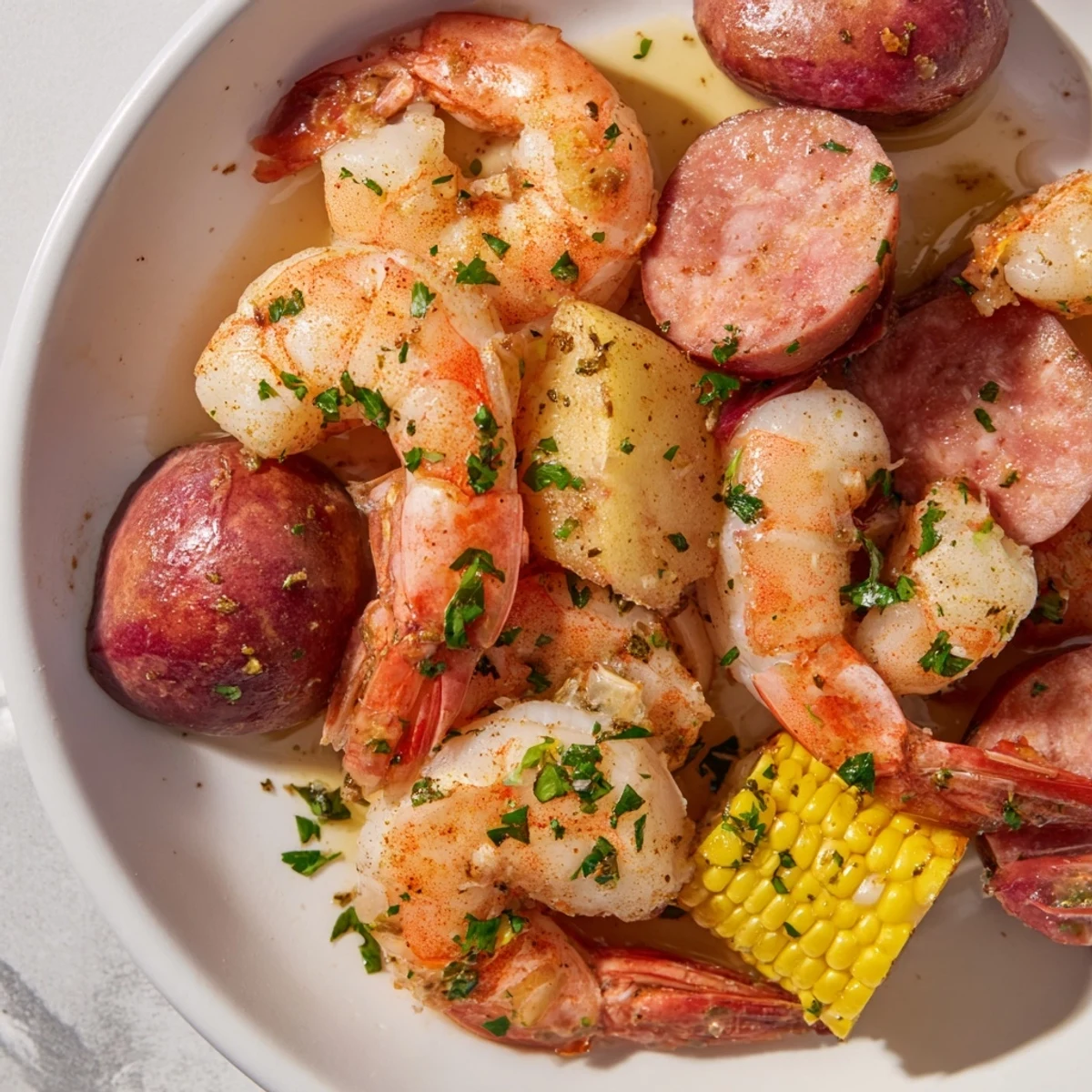 This dish combines large shrimp, Andouille sausage, tender red potatoes, and sweet corn on the cob, all simmered together with a robust blend of Creole seasonings including garlic, bay leaves, and cayenne pepper for optional heat. The boil is finished with melted butter and fresh parsley, offering a bold Southern flavor profile ideal for sharing. Cooking steps include boiling the seasoned water, adding potatoes, sausage, corn, then shrimp last to ensure perfect tenderness without overcooking. Serve hot with lemon wedges and crusty bread to soak up the flavorful broth.
