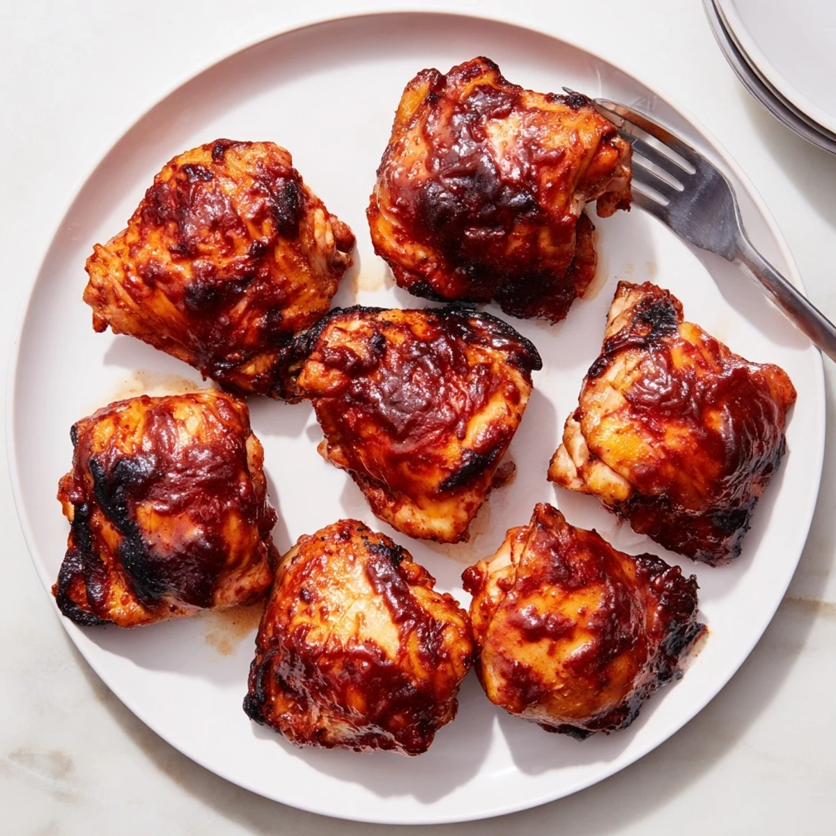 Yes. Preheat your oven to 400°F (200°C), place thighs skin-side up on a foil-lined baking sheet, and roast for 30–35 minutes. Brush with BBQ sauce every 10 minutes for that sticky glaze.