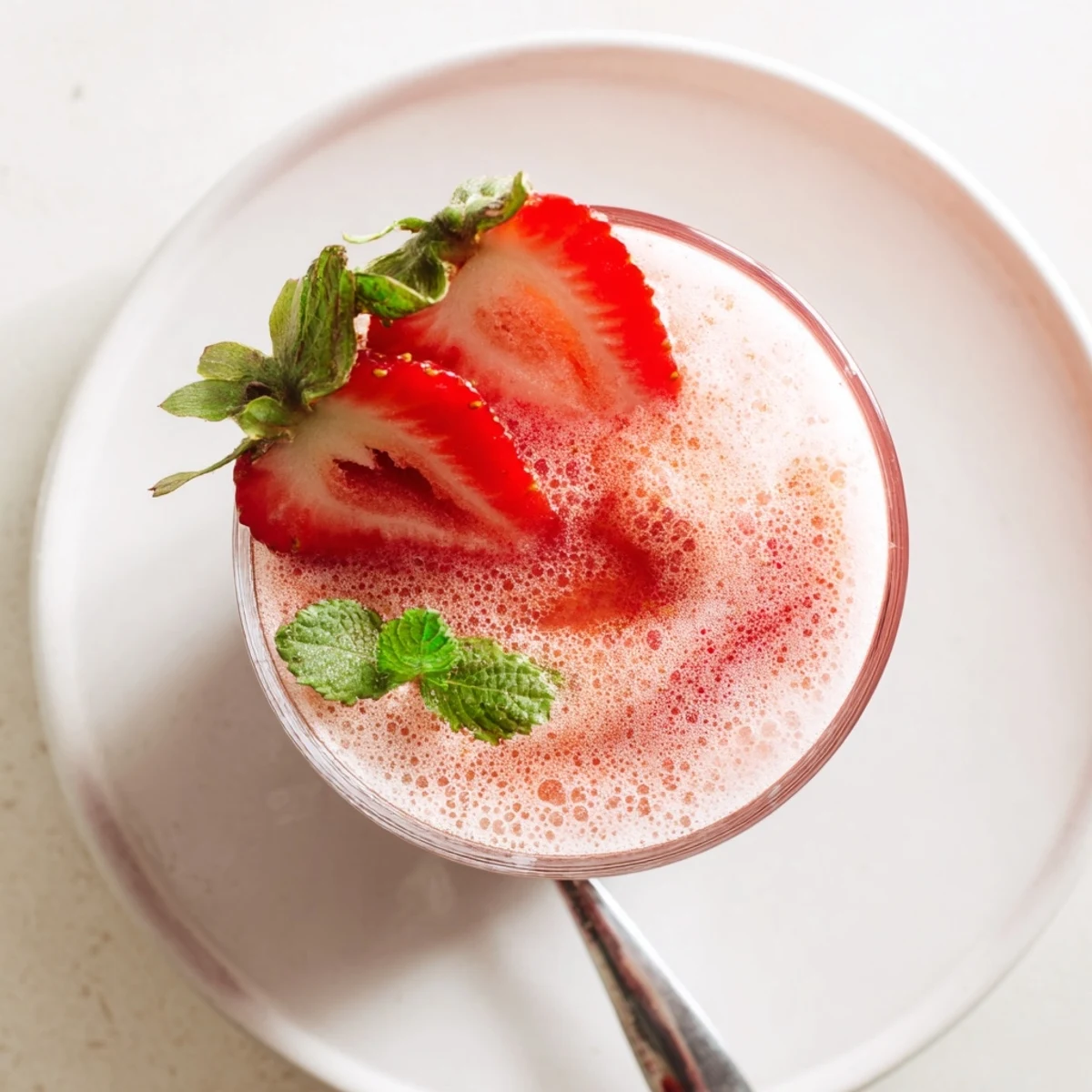 Garnish with strawberry slices and mint. Swap maple or honey for sweetener, add pineapple for tropical depth, and store up to 2 hours in the fridge, stirring before serving.