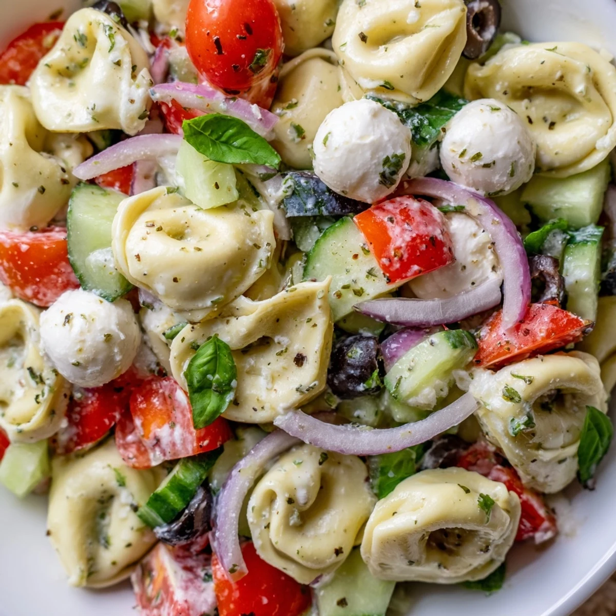Last summer my neighbor brought this to our block party and I literally hovered over the bowl the entire time, pretending to chat while strategically inching closer to the serving spoon. The combination of cold tender tortellini with those crisp vegetables and that tangy dressing made it impossible to stop eating.